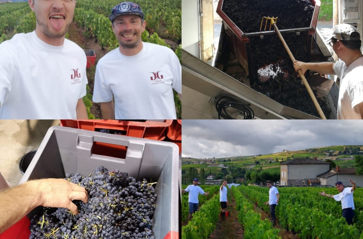 L’équipe du Château Grand’Grange continue la récolte. La bonne humeur est au rendez-vous.